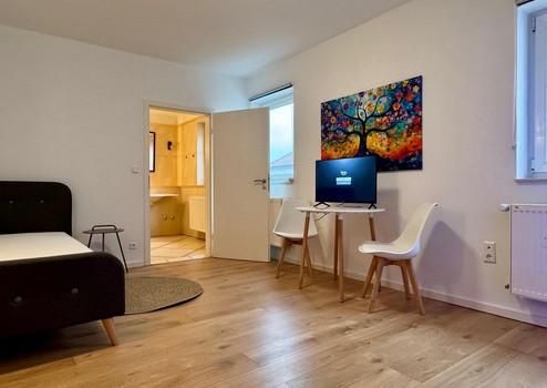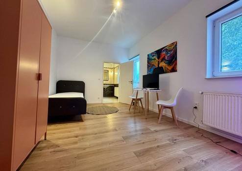 Zur Vermietung stehen zwei frisch renovierte Design-Apartments in Karlsruhe-Durlach mit ALL-IN-Miete (inkl. Nebenkosten, Strom, Wasser, Internet und Möblierung). Die Apartments befinden sich im Erdgeschoss und Obergeschoss eines ruhigen Hinterhofgebäudes. Jedes Apartment verfügt über ein eigenes, großzügiges Tageslichtbad. Eine gemeinschaftliche Küche steht zur Verfügung.