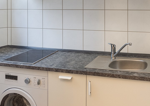 Gemeinschaftsküche mit Kochfeld, Backofen, Kühlschrank, Waschmaschine & Geschirrspüler