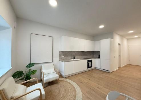 - eine moderne Einbauküche, die bereits vollständig ausgestattet ist