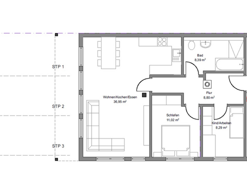 - ein separates Büro bzw. drittes Zimmer – ideal für Homeoffice oder als Gästezimmer