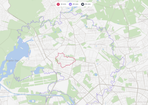 Die Wohnung befindet sich in einer ruhigen Anliegerstraße im Berliner Ortsteil Reinickendorf. Die Straße ist als Tempo-30-Zone ausgewiesen und endet als Sackgasse – Durchgangsverkehr gibt es also nicht. So entsteht eine entspannte, private Wohnatmosphäre mit viel Grünflächen und aufgelockerter Bebauung. Das Quartier wird von einer Wohnanlage aus den 1950er-Jahren geprägt, die als Gesamtanlage unter Denkmalschutz steht und dem Umfeld einen gepflegten, homogenen Charakter verleiht.