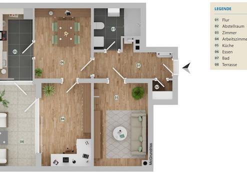 Erdgeschoss 2 Zimmer - Zentrum Nord, ETW mit großer Terrasse - Blick ins Grüne