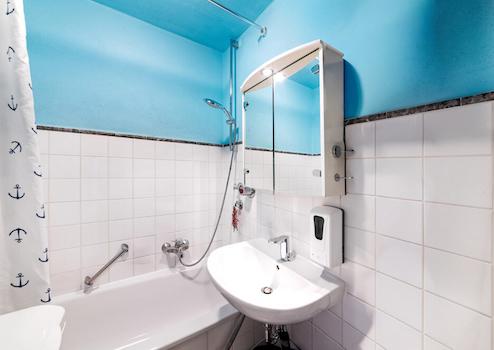 Das Badezimmer verfügt über eine Badewanne und bietet ausreichend Platz für den täglichen Komfort. In der Diele sorgt ein maßgefertigter Einbauschrank für praktischen Stauraum. Vor wenigen Jahren komplett erneuerte Kunststofffenster mit Rollläden bieten zusätzlichen Komfort in Bezug auf Wärmedämmung, Verdunkelung und Sichtschutz.