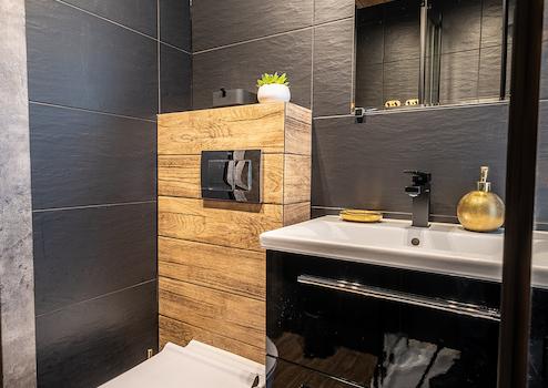 Badezimmer - Tiefspül WC • Warmwasser - Boiler • Echtglas Dusche inkl. Duschtasse