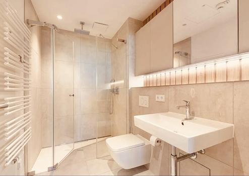 Der Masterbedroom mit en-suite Luxusbad bietet Rückzug und Ruhe: bodengleiche Dusche, elegante Badewanne sowie maßgefertigte Einbauten schaffen ein exklusives Ambiente. Zwei weitere Zimmer, ein zusätzliches Duschbad sowie ein separates Gäste-WC bieten Flexibilität für Familie, Gäste oder ein hochwertiges Homeoffice.