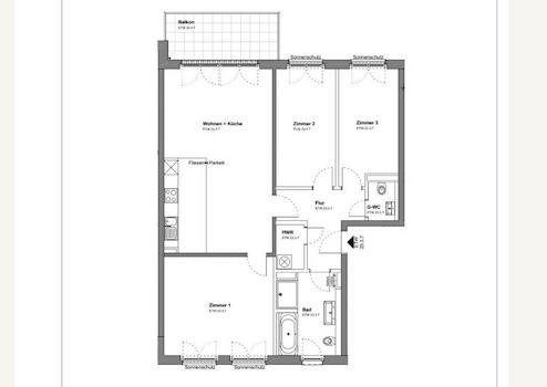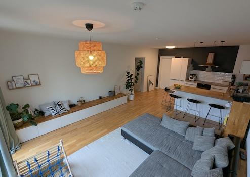- außergewöhnlich guter Schallschutz aufgrund von dickerer Betonplatte der Decke (aufgrund von Teilgeschoss der darüberliegenden Wohnung)