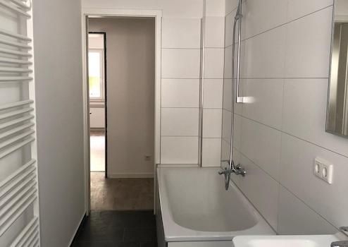 Wohnung im Jahr 2019 mit hochwertigen Materialien vollständig saniert, neues, helles Bad (Tageslicht), neue Leitungen (Elektro), alle Räume hochwertiges Parkett, Küche und Bad (mit Badewanne) weiße Fliesen, Wohnungstür extra-sicher und Geräusch-dicht dank Biffar Sicherheitstür RC 23 mit Sicherheitsbeschlag , Aufzug vorhanden, dazu ein kleines Kellerabteil.