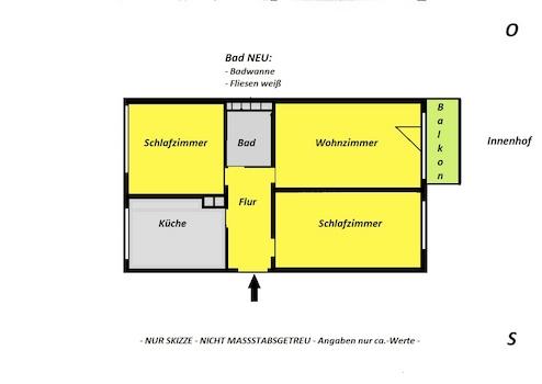 Aufteilung der Wohnung siehe SKIZZE und FOTOS: