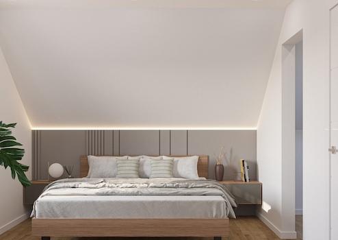 Im Dachgeschoss des Hauses sind zwei schöne Kinderzimmer, ein Elternschlafzimmer, ein Flur und ein Familienbad untergebracht.