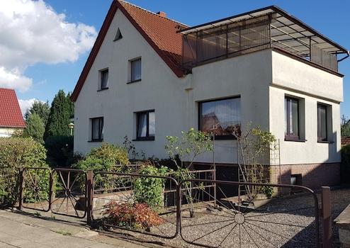 Dieses schmucke, voll unterkellerte, lichtdurchflutete Einfamilienhaus (Baujahr 1938) befindet sich auf einem 769 m² großen Eckgrundstück im idyllischen Güstrower Stadtteil Dettmannsdorf. Es steht inmitten eines hübsch angelegten und gepflegten Gartens mit Rasenflächen, Blumenrabatten und Obstbäumen, der von einer Fliederhecke umgeben ist.