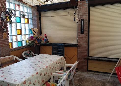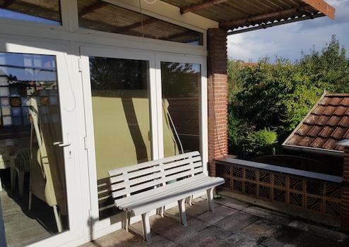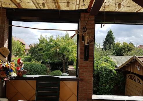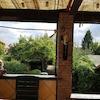 1981 wurde das Erdgeschoss um eine 30 m² große Terrasse mit Zugang von der Küche aus und Ausblick in den Garten erweitert. Sie ist zur Hälfte überdacht, durch Wintergartenelemente und Jalousien, die sich öffnen lassen, geschlossen und wetterunabhängig nutzbar. Unter der Terrasse befindet sich neben einem geräumigen Kellerraum auch der Pumpenraum. Denn das Objekt verfügt über einen eigenen Wassertiefbrunnen.