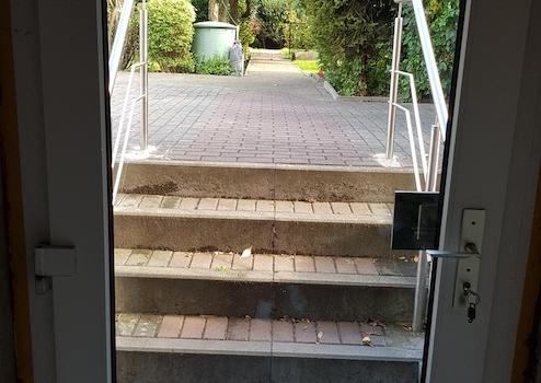 • elektrischer Türöffner mit Gegensprechanlage im Erdgeschoss und Obergeschoss