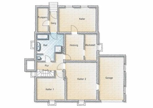 • Kellergeschoss: Wanne, Dusche, Waschbecken, Stand-WC