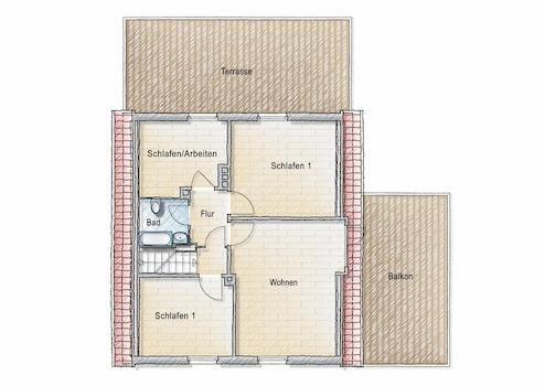 • Erdgeschoss: Waschtisch, Stand-WC, Dusche