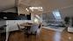 Herzstück der Wohnung ist der großzügige Wohn-/Ess- und Kochbereich mit rund 37 m². Durch die offene Gestaltung, die sichtbaren Holzbalken und die gemütlichen Dachschrägen entsteht ein besonderer Wohncharakter – ideal für alle, die Weite und Behaglichkeit kombinieren möchten. Von hier aus gelangen Sie direkt auf den Balkon, der den Wohnraum nach außen erweitert und Platz für eine kleine Sitzgruppe bietet.