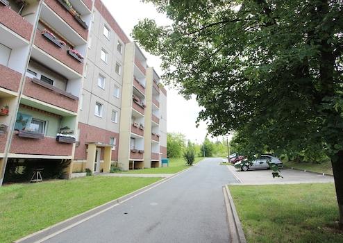 Es handelt sich um einen teilsanierten Plattenbau im ruhigen und grünen Umfeld von Bieblach-Ost. Stellplätze sind ausreichend vorhanden.