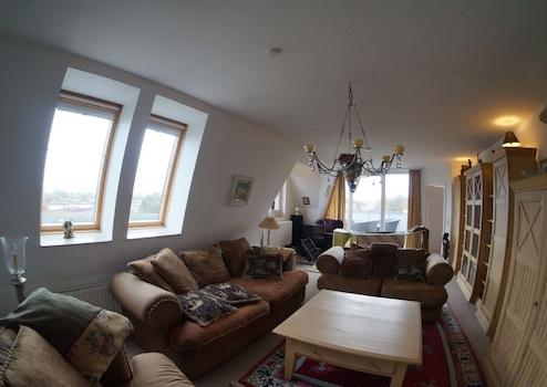 Die schöne Einheit befindet sich im Dachgeschoss. Von der Dachterrasse, die über Eck im Dach errichtet wurde, haben Sie einen wundervollen Weitblick. Zur Wohnung hin sind große Fensterelemente, in der Wohnung wechseln sich Velux -Dachfenster sowie normale Fenster ab. Im wunderschönen Wohnzimmer wartet auch ein Kaminofen auf Benutzung.