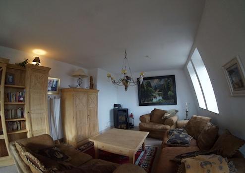Die Wohnung ist vollständig möbliert und bietet auch einen Kaminofen im Wohnzimmer.