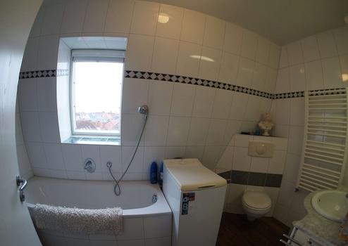 Die Küche ist unmittelbar an der Terrasse, so dass eine zügige Verpflegung gewährleistet ist. Selbstverständlich gibt es ein Privatbad mit Dusche und Wann sowie ein Gäste WC. Im Flur wurde an einen geräumigen Einbauschrank gedacht. Natürlich hat hier jedes Zimmer ein Fenster, ausgenommen das Gäste WC.