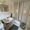 Das Bad hat natürlich ein Fenster, ausgestattet ist es mit Dusche, Waschtisch, WC und Waschmaschine.
