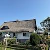 Das reetgedeckte Einfamilienhaus mit seinem weißen, rustikalen Klinker steht auf einem sonnigen Grundstück direkt am Feldrand.