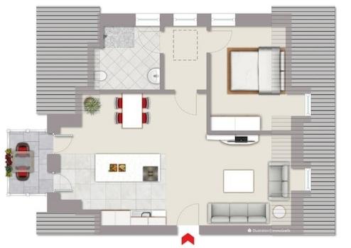 Die beiden Wohnungen im Dachgeschoss verfügen über zusätzliche Nutzfläche im Spitzboden.