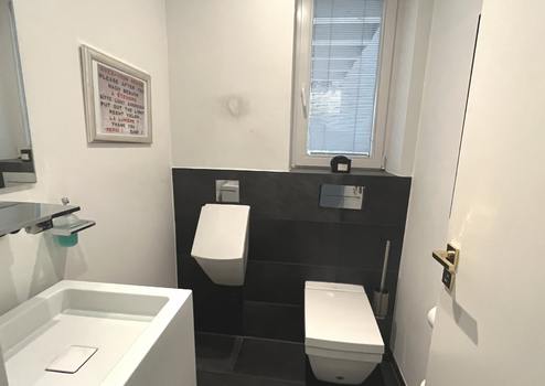 Neben Wellnessbereich und Wohn-/Esszimmer gibt es im Erdgeschoss noch eine Küche, ein Büro/Fernsehzimmer sowie ein Gäste-WC.
