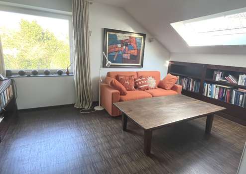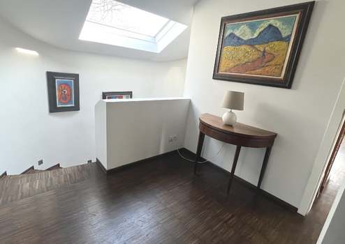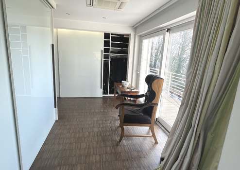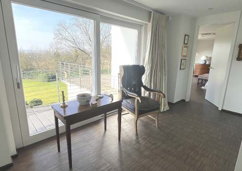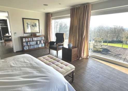 Im 1. Obergeschoss befinden sich die Schlafräume. Das große Elternschlafzimmer mit vorgelagertem Ankleidezimmer bietet einen atemberaubenden Ausblick auf den großen Garten. Neben dem Elternschlafzimmer gibt es im 1. OG noch ein Kinder- oder Gästezimmer mit eigenem Bad und ein großzügiges Badezimmer (ca. 30 m²) mit Badewanne, Dusche und zwei Handwaschbecken!