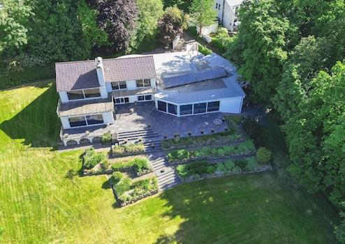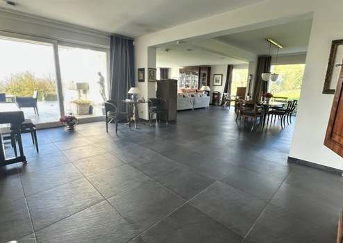 Insgesamt ca. 410 m² Wohnfläche (davon ca. 135 m² Spa-Bereich) verteilen sich auf zwei Ebenen. Neben dem Wellnessbereich (Schwimmbad, Sauna, Dampfbad) ist der großzügige, sehr modern und offen gestaltete Wohn-/Essbereich (ca. 84 m²) das absolute Highlight. Von hier aus gibt es einen direkten Zugang zur Sonnenterrasse und dem parkähnlichen Garten. Ob Sie den Garten komplett und in Gänze alleine nutzen oder im hinteren Bereich noch neu bebauen bleibt Ihnen überlassen. Die Möglichkeit zur weiteren Bebauung besteht!