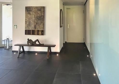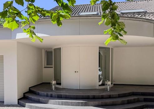Die im großen Garten verbaute Flächengeothermie in Verbindung mit einer Wärmepumpe wird ergänzt durch 10 Solarkollektoren, die für Schwimmbad, Trinkwasser und Heizungsunterstützung zur Verfügung stehen.