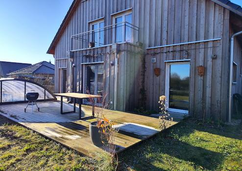 Das hochwertige, erst 2023 erbaute Hauptgebäude und der Gartenbereich, bewusst pflegeleicht gestaltet und ausgestattet mit einem gemütlichen Terrassenbereich und Swimming-Pool sowie die bevorzugte Wohnlage in Wees, ganz in der Nähe von Flensburg, wird Sie einfach nur begeistern!