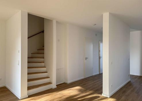 Dieses moderne Neubauhaus bietet auf drei Etagen hohen Wohnkomfort. Es verfügt über eine energieeffiziente Luft-Wasser-Wärmepumpe und eine PV-Anlage mit Speicher für die Warmwasseraufbereitung.