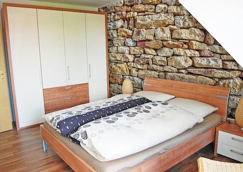 TV SAT/Kabel, Bettwäsche, Doppelbett (160x200 cm), Kleiderschrank.