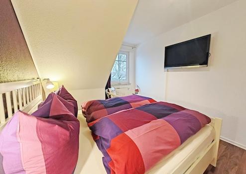 Das Haus verfügt über eine exklusive Innenausstattung mit 49'' UHD Smart-TV mit Home-Entertainment Anlage, Wii und ein zusätzlicher 42'' SAT-TV in einem Schlafzimmer. Die große Nolte-Küche ist voll ausgestattet! Außerdem gehören 3 Schlafzimmer, ein Bad mit Dusche, Wanne, Föhn und Fußbodenheizung, sowie ein Gäste-WC mit Waschmaschine und Trockner zum Haus. Moderne SMART HOME-Ausstattung von Homematic IP: Alarmanlage, vernetzte Rauchmelder, Smart Lock für die Haustüre und smarte Heizkörperthermostate mit separaten Temperatur- und Luftfeuchtigkeitssensoren.