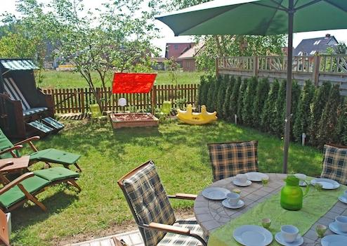 Ihnen stehen im Garten auch ein Grill, ein Strandkorb und zwei Sonnenliegen zur Verfügung.