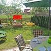 Grill, Gartenmöbel, Liegewiese, Sonnenliegen, großer Sonnenschirm, Strandkorb.