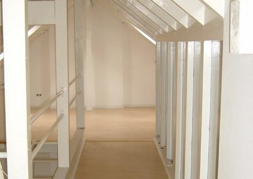 Im Dachgeschoss befindet sich eine Maisonetten-Wohnung mit leichten Schrägen, offenem Giebel und ca. 85,57 m² Wohnfläche aufgeteilt in großzügigen Wohn-/Essbereich mit offener Küche und Galerie, Schlafzimmer, Arbeitszimmer mit Ausgang zum Balkon, Tageslichtbad und kleine Diele mit Gäste-WC.