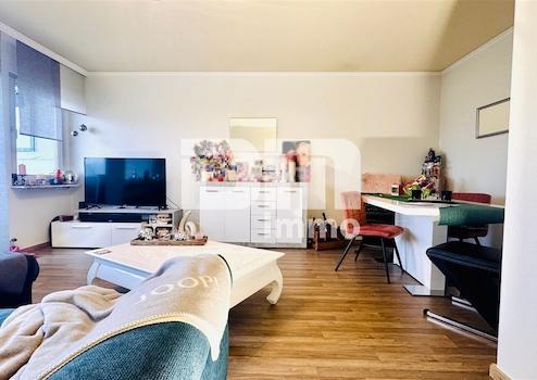 Das Wohn-Esszimmer ist - wie auch die beiden großzügig geschnittenen Schlaf-/Kinderzimmer- mit einem strapazierfähigen erneuerten Laminatboden ausgestattet.