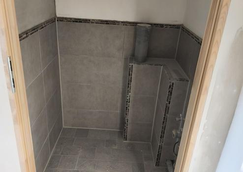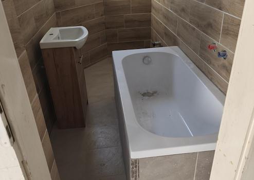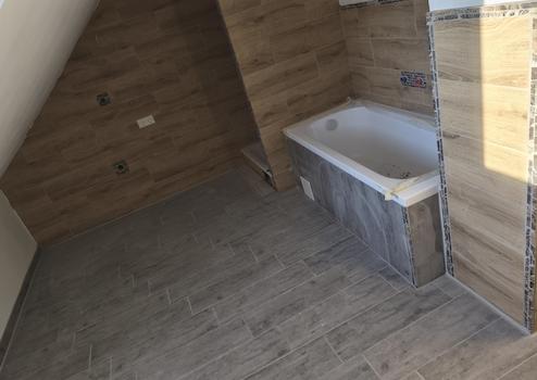 und ein Großes Wc mit Dusche und Wanne das haus ist nicht billig schnell zusammen geschustert unter allen Rigipsplatten sind Osb platten also unzerstörbar gut zum vermieten . Die Nagelneue Vissmann Therme ist in dieser Wohnung in einem kleinem Heizraum von dort aus beheizt sie das ganze Haus . Bis jetzt ist nur vorgemalert der Elektriker hat noch einen Tag Arbeit . der Gas Wasser Mensch noch ca 2 dann sind die 2 Wohnungen bezugsbereit