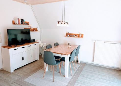 Das Ferienhaus bietet Ihnen über zwei Etagen eine schöne Urlaubsatmosphäre und einen Ort zum Wohlfühlen. Es verfügt über 2 separate Schlafzimmer, ein Wohn-Esszimmer, Küche, Flur, ein modern gefliestes Duschbad und ist ca. 50 qm groß (Grundfläche).