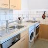 Die Küche ist voll ausgestattet mit: Backofen, Herd, Geschirrspüler, Waschmaschine, Kühlschrank mit Gefrierfach sowie Mikrowelle, Wasserkocher und Kaffeemaschine, etc.