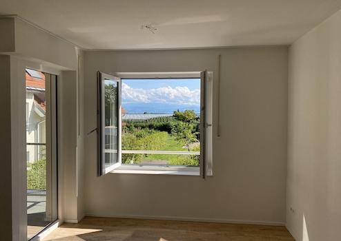 Die Wohnung verfügt über ein Schlafzimmer, ein weiteres Zimmer, einen Abstellraum sowie ein großzügiges Tageslichtbad mit bodengleicher Dusche, WC und Handtuchheizkörper. Der offene und lichtdurchflutete Wohn- und Essbereich bietet über große Fenster sowie den angrenzenden, großzügigen und überdachten Südbalkon einen beeindruckenden Ausblick über Gärten und Wald bis hin zum See und den Alpen.