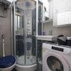 Badezimmer hat Dampfsauna/Dusche, WCs und gut platzierte kleine Waschmaschine. Hier ist der kleiner Raum ist wirklich optimal eingerichtet.