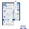 Es verfügt über eine Kochnische mit Küchenzeile, ein helles Tageslichtbad mit Dusche sowie einen kombinierten Wohn- und Schlafbereich.