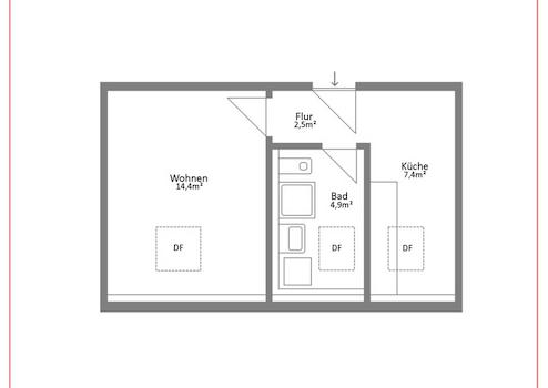 Die Wohnung bietet damit eine ideale Struktur für Single-Haushalte und ist aufgrund ihrer Größe und Lage besonders gut vermietbar.