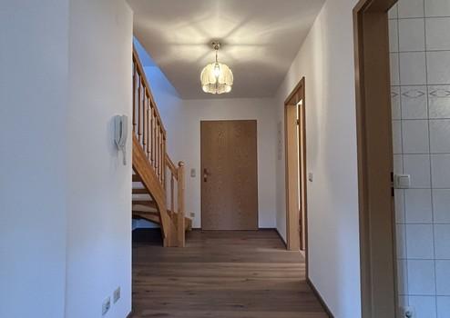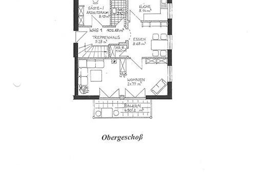 Sehr schöne -4-Zimmer-Maisonette-Wohnung, ca. 100 m² Wfl., I. OG + DG, offener Wohn-Ess-Küchen-Bereich, drei Schlafzimmer, Bad/WC, sep. Gäste-WC, SW-Balkon, Keller, 2 TG-Stellplätze m. Abstellraum