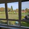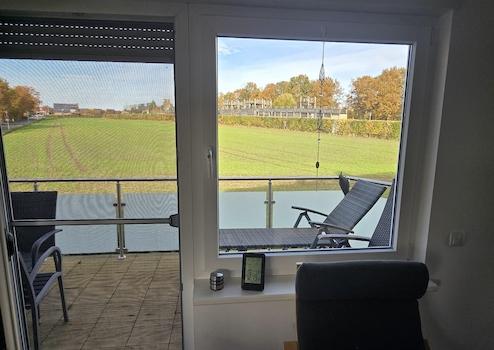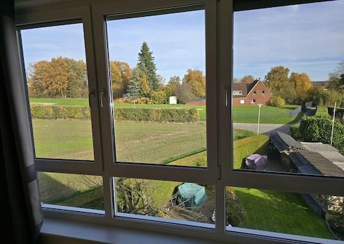 Das Haus liegt neben einem Feld mit Blick auf das Römerlager.