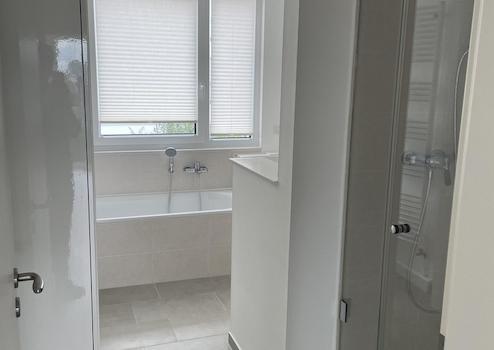 - Großes hochwertiges Badezimmer mit Fenster, WC, Dusche und Badewanne