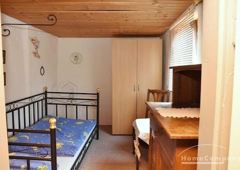 1. Schlafzimmer 8 qm mit Bett 1 m, Schrank, Sekretär, Tisch.