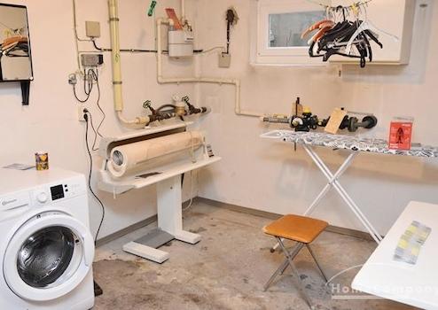 Keller mit Waschmaschine, Heißmangel.
